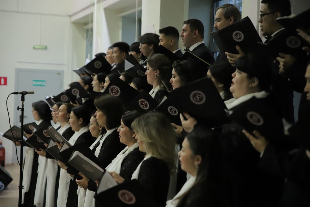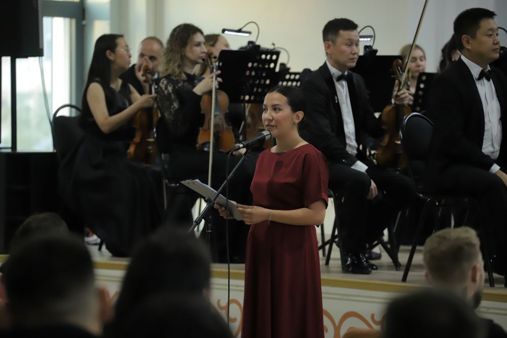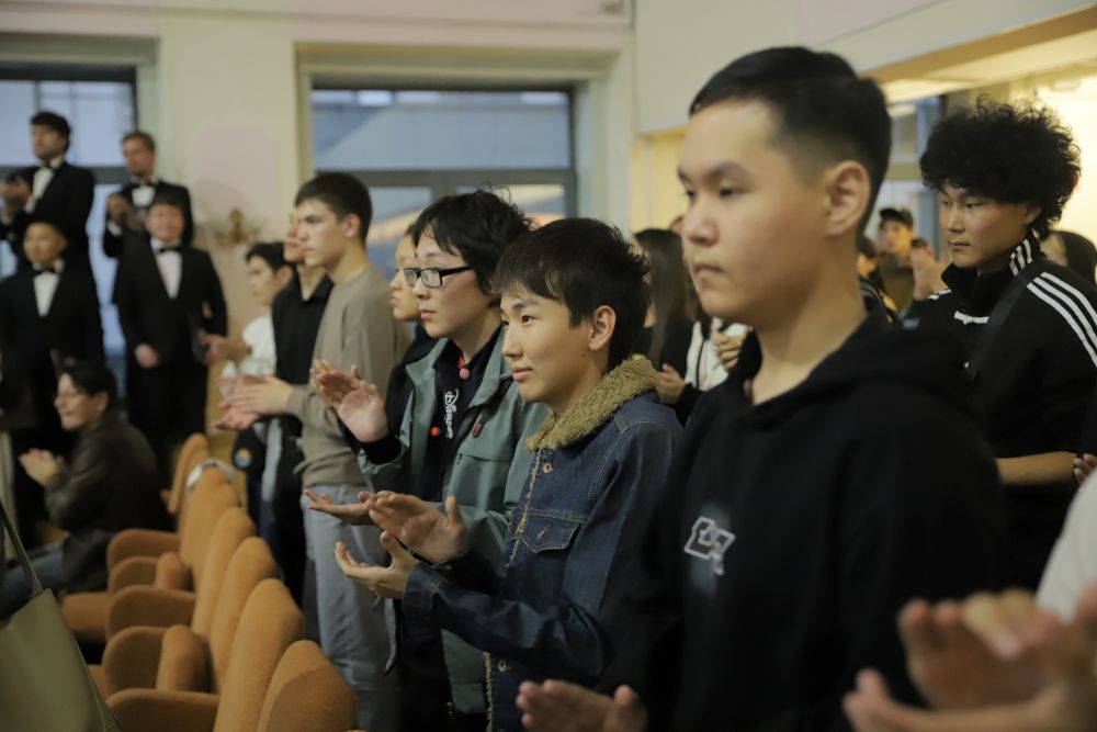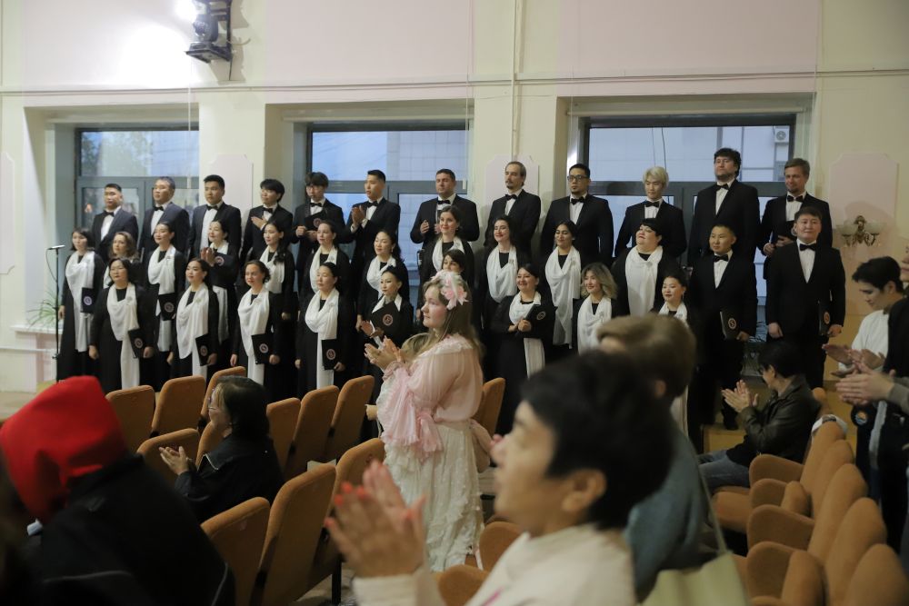 Пронзительные, узнаваемые строки Рождественского в исполнении артиста Государственного академического русского драматического театра им. А.С. Пушкина Шохруза Шепелева звучали как голос всей нации, обращенный к прошлому и будущему. Это был не просто концертный номер, а коллективное переживание, где слово, музыка и пение слились в едином посыле — помнить и беречь мир во имя жизни.