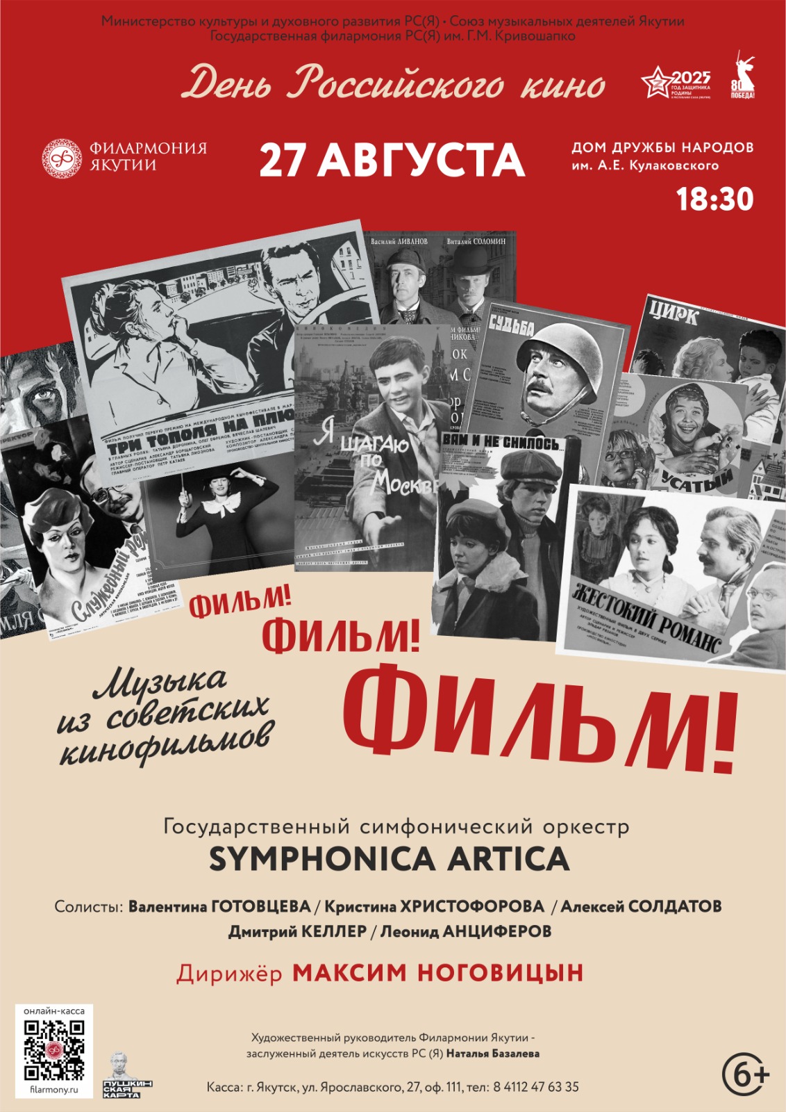 Ко Дню Российского кино Филармония Якутии приглашает на концерт "Фильм, фильм, фильм!"