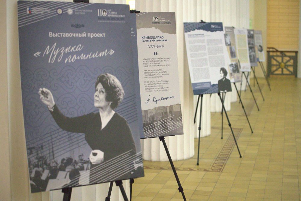Преддверием музыкальной программы в фойе Консерватории стало открытие выставочного проекта «Музыка помнит», посвященного жизни и творческому пути выдающегося музыкального деятеля - основоположника симфонического исполнительства в Якутии Галины Михайловны Кривошапко.