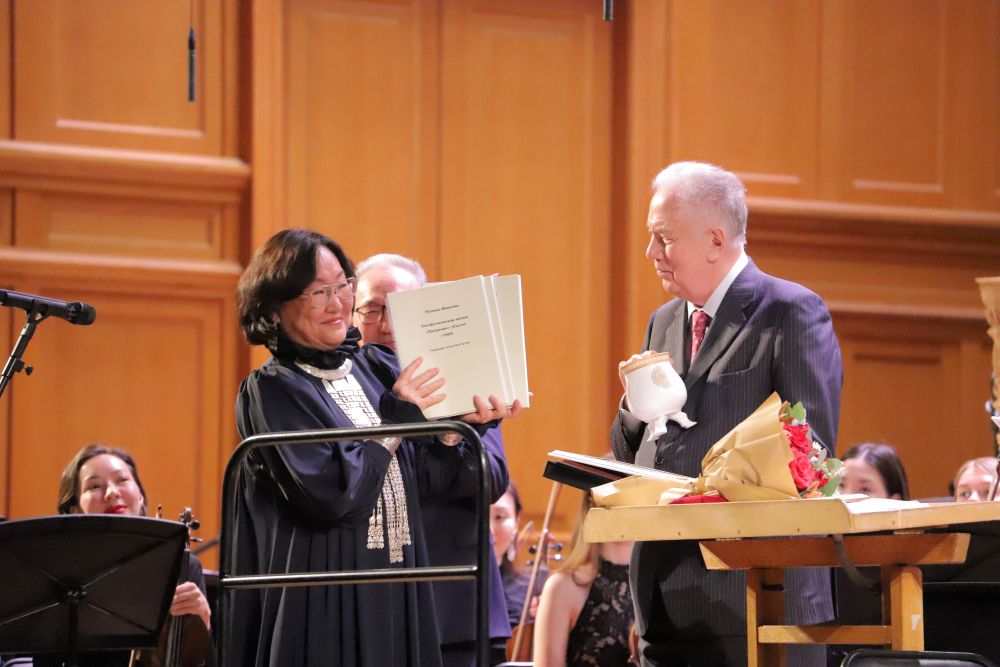 Важным символическим моментом вечера стала передача восстановленных партитур произведений, представленных в программе концерта: генеральный директор Филармонии Якутии Туйаара Пестрякова передала их ректору Московской государственной консерватории Александру Соколову.