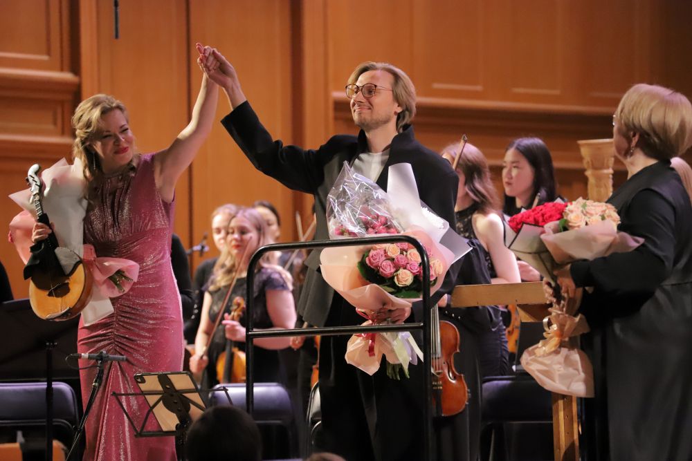 Второе отделение продемонстрировало широту репертуара оркестра. Публика тепло приняла Концерт для домры с оркестром «Три русских впечатления» современного композитора Дениса Хорова. Солистка – лауреат всероссийских и международных конкурсов Екатерина Мочалова блестяще передала живописные образы частей концерта — от весеннего ледохода до звонких хороводов.