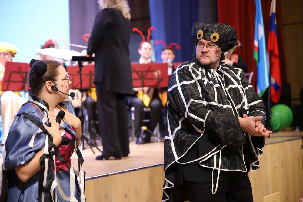 Особенностью концерта стало то, что артисты оркестра не только виртуозно исполняли музыку, но и перевоплотились в героев сказки. Муху-Цокотуху сыграла Александра Руденко, Комарика - Александр Резников, Паука - Роман Свидерский, Бабушку Пчелу - Клара Карманова, Бабочку - Ирина Ситникова.