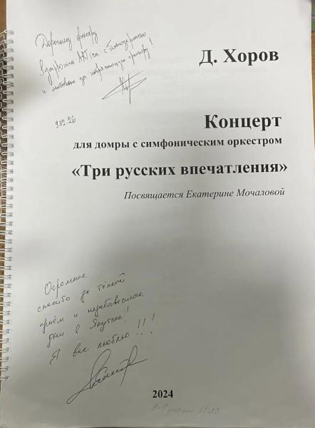 Вечер 9 февраля 2026 года войдет в историю музыкальной культуры не только Якутии, но и всей России. Сегодня в Доме дружбы народов им. А.Е. Кулаковского Государственная филармония РС(Я) им. Г. М. Кривошапко представила концерт «Гармония контрастов», центральным событием которого стала мировая премьера — Цикл для домры с оркестром «Три русских впечатления» современного композитора Дениса Хорова.