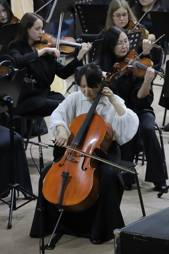 Исполнительницей сольной партии стала юная виолончелистка Айталина Слепцова. Несмотря на свой возраст, она — уже опытная участница конкурсов от Якутска до Новосибирска и Уфы, лауреат «Новых имен Якутии» и обладатель премии «Золотой стерх». Её талант оттачивался в классе профессора Ольги Кошелевой в Высшей школе музыки, на мастер-классах мэтров, таких как Алексей Селезнев, и в концертных поездках по России и Монголии в составе школьного оркестра. А в 2023 году она уже выходила на сцену с Symphonica ARTica. Сегодняшнее выступление стало для Айталины новой важной ступенью — специальным призом филармонии «Соло с оркестром». Её исполнение, то трепетное и глубокое, то виртуозное и мощное, не оставило сомнений в правильности выбора. Публика, затаив дыхание следившая за диалогом виолончели и оркестра, наградила солистку продолжительными, теплыми аплодисментами.