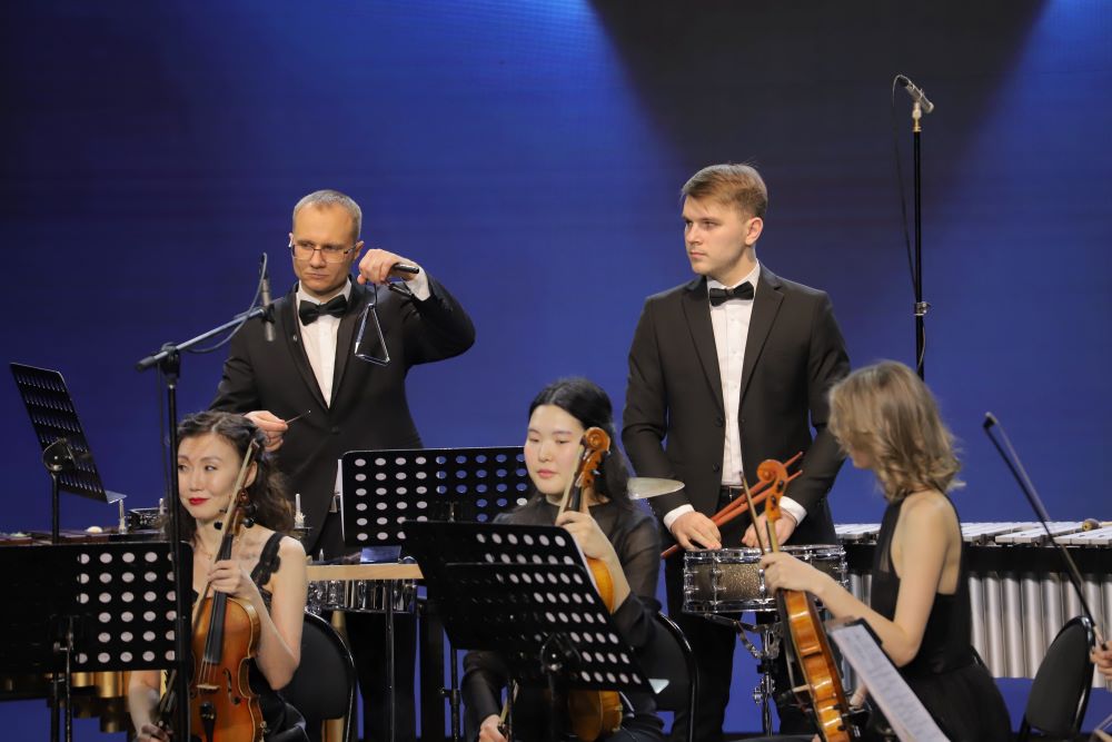 - Мы играем музыку совершенно разных стилей и изучаем опусы, которые редко можно услышать в наших краях в живом исполнении, чтобы знакомить публику со всё новыми шедеврами академического искусства. Сегодня вы слышали произведение Кирилла Герасимова "Из якутских легенд" — этот номер специально составлен для конкурсных выступлений, и в таком виде он нам приносил победы, за что мы всегда благодарны Кириллу Афанасьевичу.