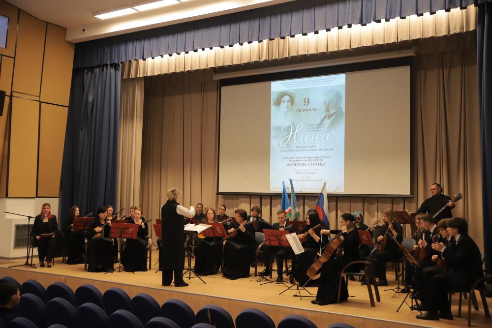 9 и 10 февраля Государственный оркестр русских народных инструментов «Золотые струны» под управлением Александры Болотновой выступил в Национальной гимназии «Айыы Кыhата» и Городской классической гимназии № 8 г. Якутска. Музыканты представили литературно-музыкальную композицию «Нина», посвящённую истории любви Александра Грибоедова и Нины Чавчавадзе.