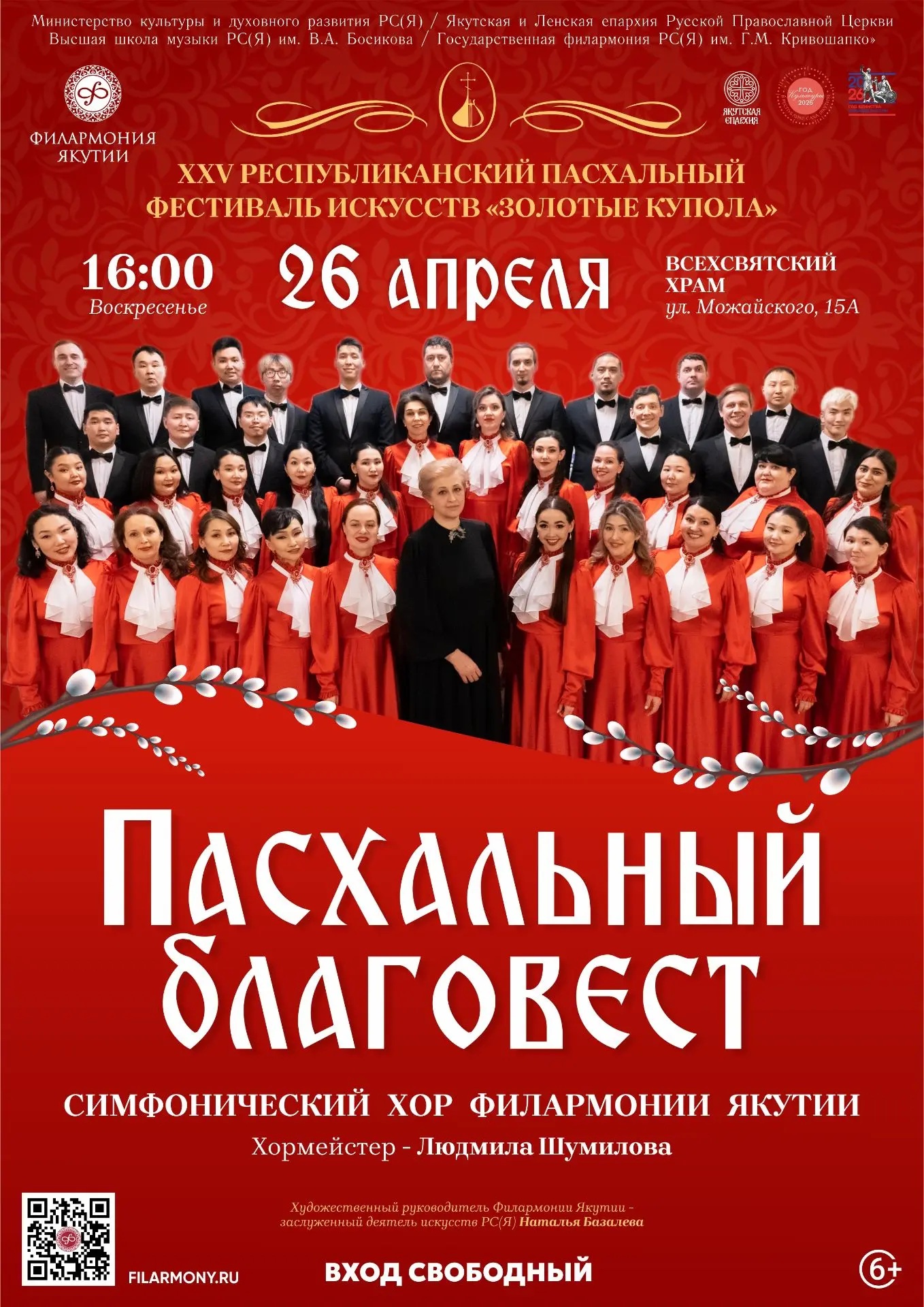 Концерт Симфонического хора Филармонии Якутии под управлением заслуженного деятеля искусств РС(Я) Людмилы Шумиловой пройдет в рамках XXV Республиканского Пасхального фестиваля искусств "Золотые купола".