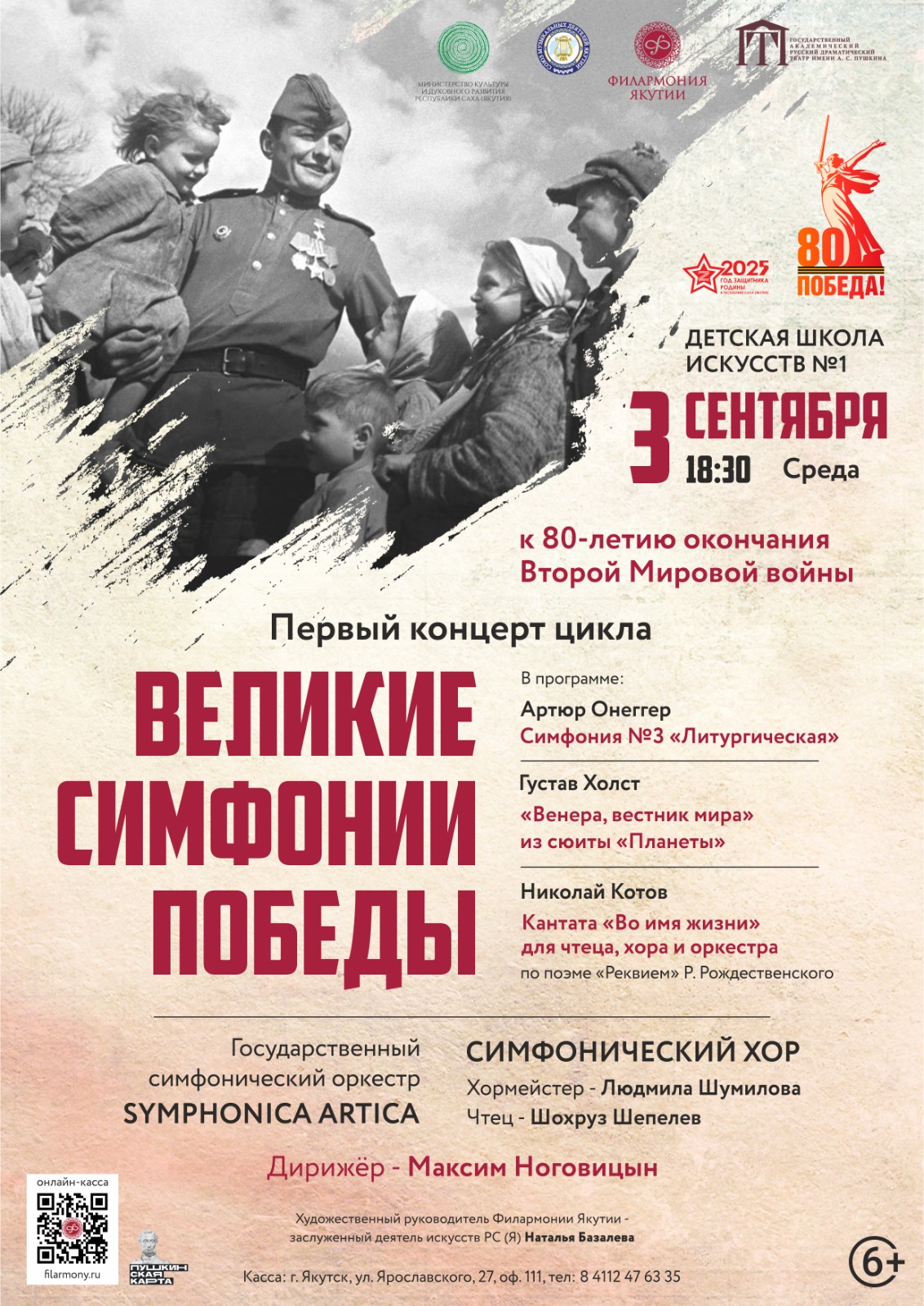 К 80-летию окончания Второй Мировой войны Филармония Якутии приглашает на концерт цикла «ВЕЛИКИЕ СИМФОНИИ ПОБЕДЫ»!