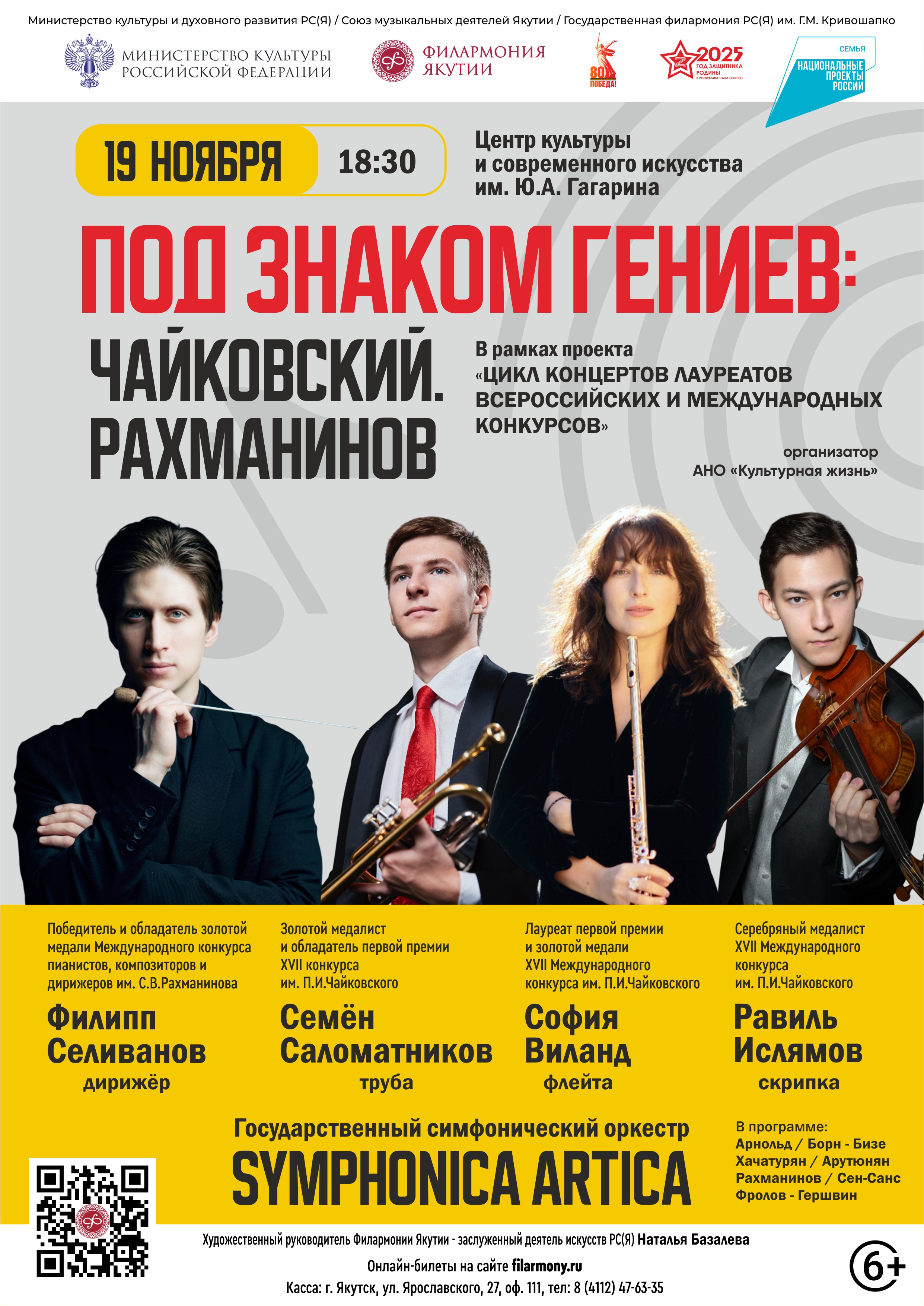 Филармония Якутии и АНО «Культурная жизнь» при поддержке ФГБУК «Росконцерт» и Министерства культуры РФ приглашают на концерт в рамках проекта «Цикл концертов лауреатов Всероссийских и Международных конкурсов». Мероприятие проходит в рамках Нацпроекта «Семья».