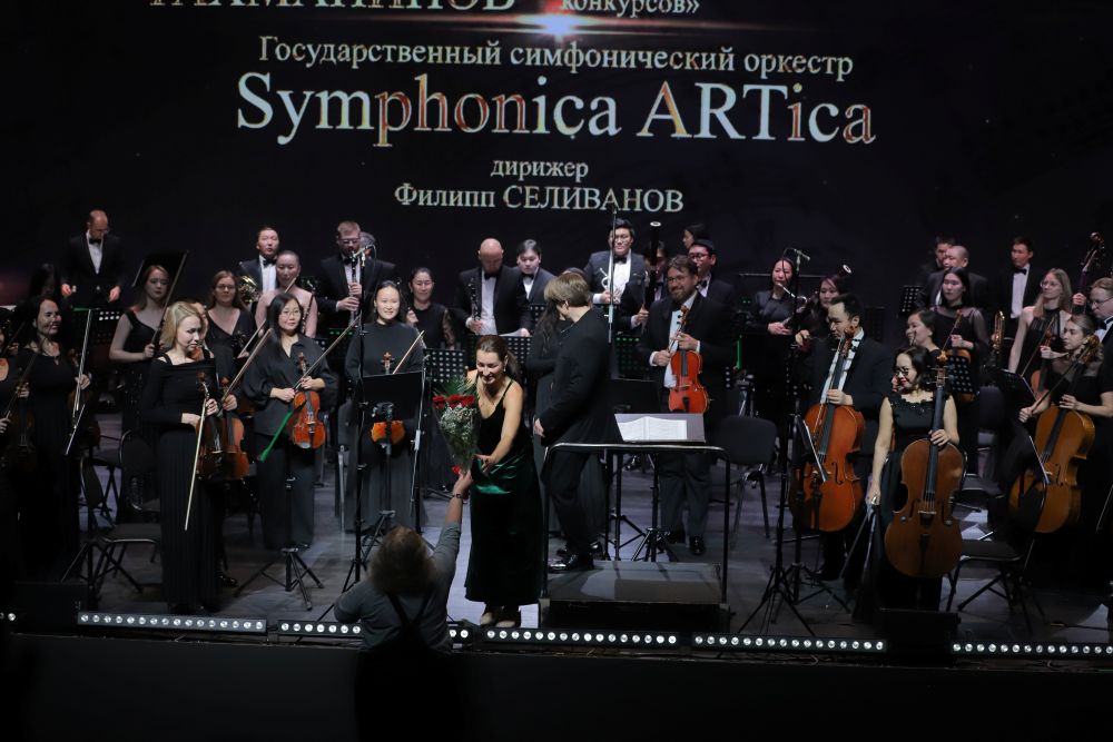 Сразу четыре ярких, молодых музыканта: София Виланд (флейта), Семён Саломатников (труба), Равиль Ислямов (скрипка) и дирижер Филипп Селиванов выступили вместе с Государственным симфоническим оркестром Symphonica ARTica Филармонии Якутии на сцене Центра культуры и современного искусства имени Юрия Гагарина.