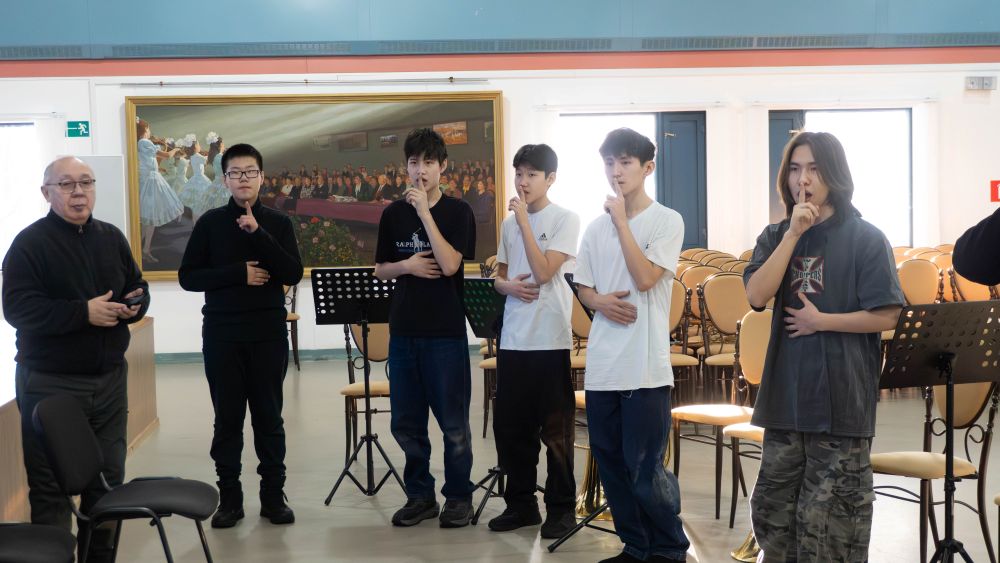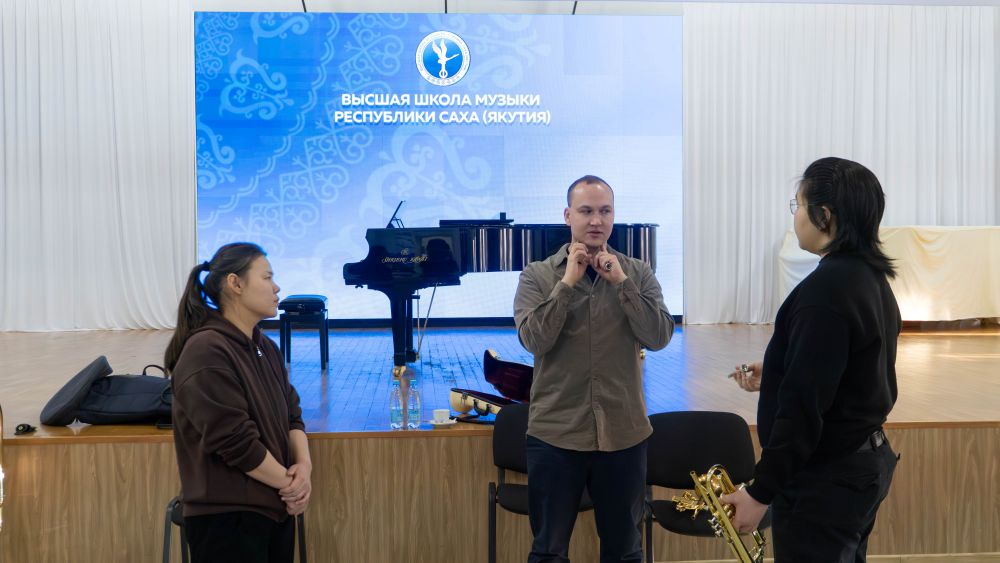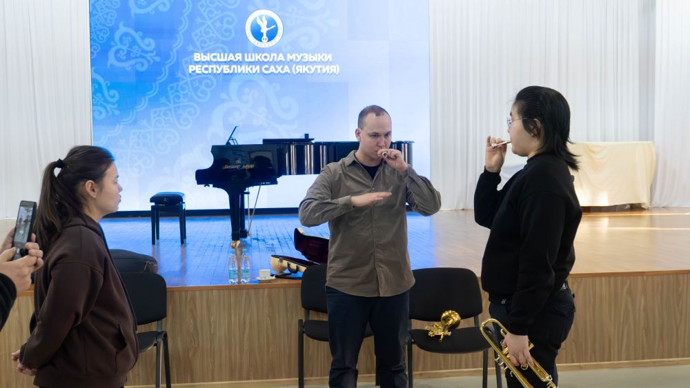 Затем мастер-класс состоялся для учащихся духового отделения Высшей школы музыки РС(Я) имени В. А. Босикова. Занятие прошло в формате живого общения: маэстро поделились с юными коллегами секретами исполнительского мастерства, дыхания и сценической выдержки, а также ответили на вопросы воспитанников.