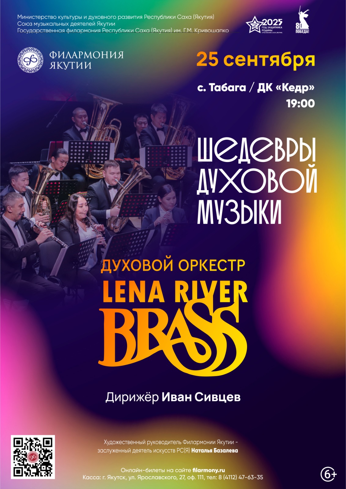 Филармония Якутии приглашает на концерт Духового оркестра Lena River Brass под управлением заслуженного артиста Республики Саха (Якутия) Ивана Сивцева - "Шедевры духовой музыки".