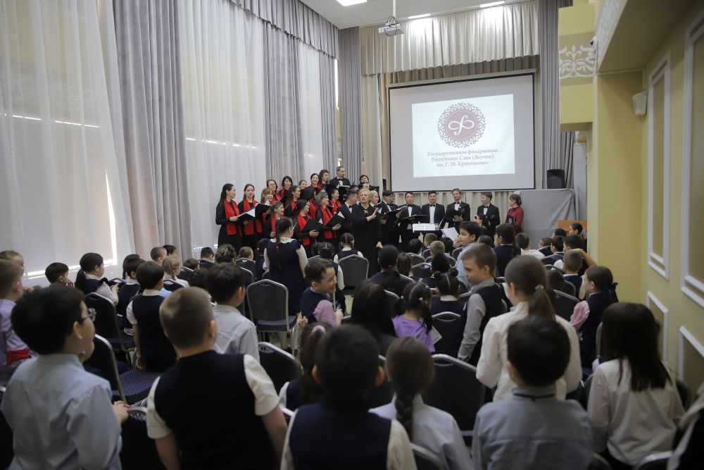 24 апреля 2026 года в Средней общеобразовательной школе № 26 г. Якутска состоялся настоящий музыкальный марафон: Симфонический хор Филармонии Якутии под управлением заслуженного деятеля искусств Республики Саха (Якутия) Людмилы Шумиловой дал три концерта из цикла «Я Родиной своей горжусь». Зрителями стали учащиеся разных классов.