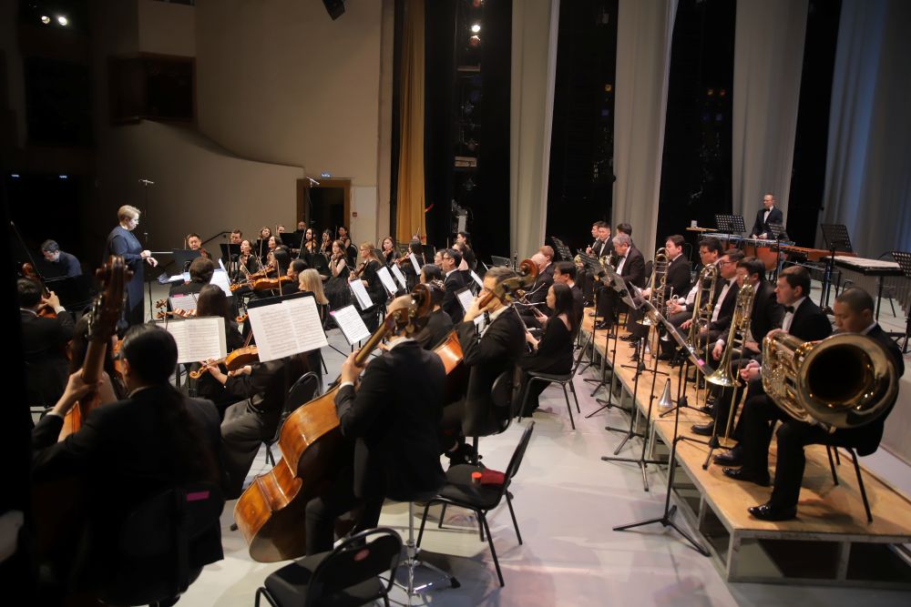 Открыла программу «Праздничная увертюра» Дмитрия Шостаковича в исполнении Государственного симфонического оркестра «Симфоника АРТика» под управлением заслуженного деятеля искусств Республики Саха (Якутия) Натальи Базалевой.