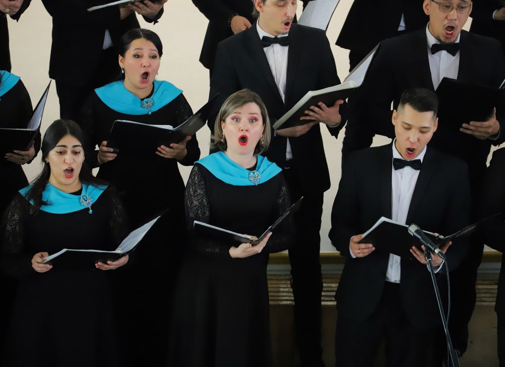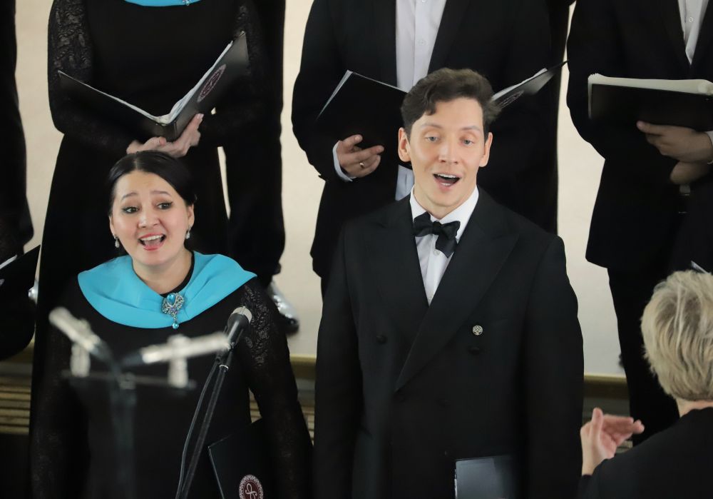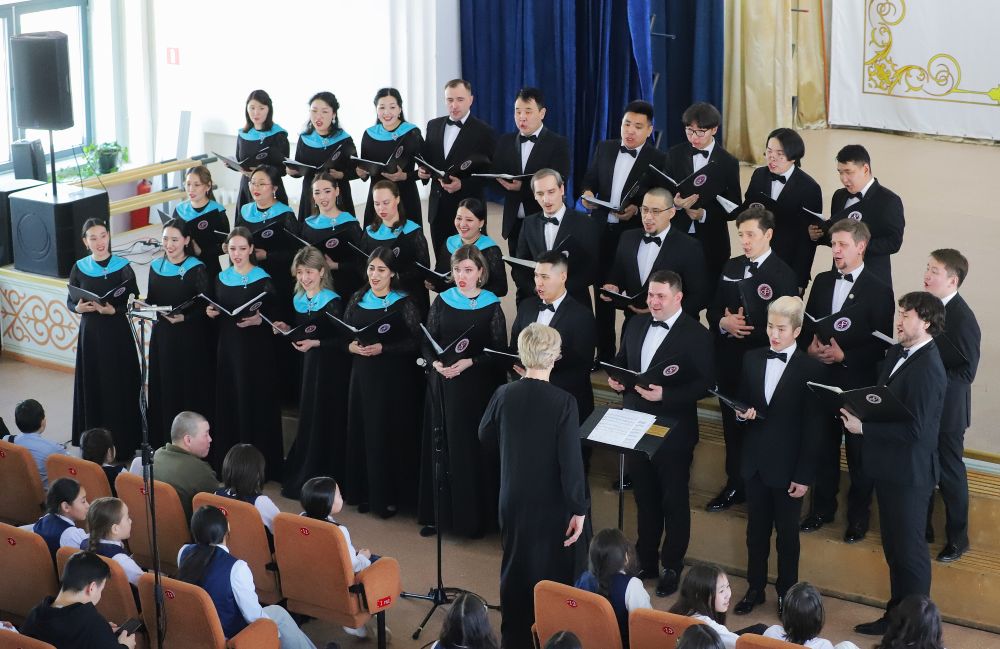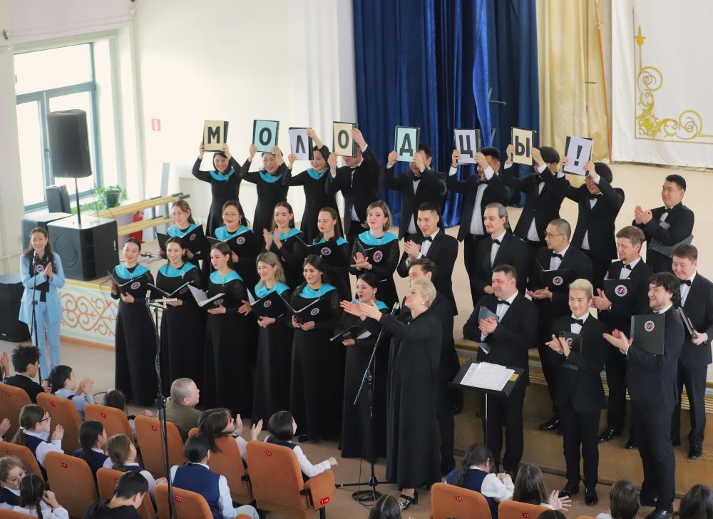 Ребята продемонстрировали знание Гимнов — сначала России, а затем Якутии. Вместе с профессиональным хором они пели в едином порыве, в унисон с великой музыкой.