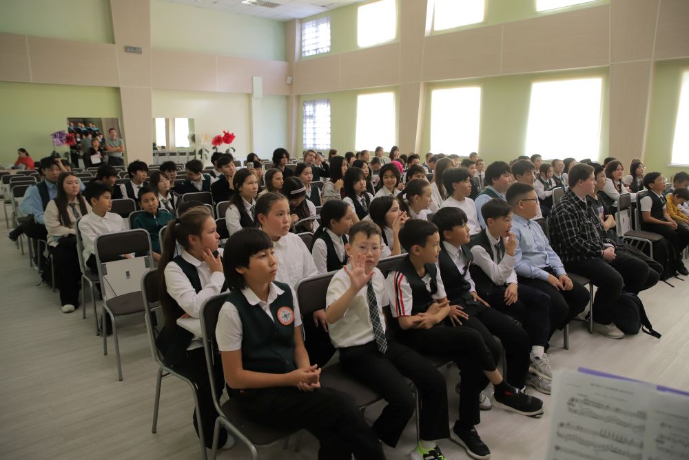 Ребята с большим энтузиазмом включались в игру. Они наперебой отвечали на вопросы, которые рождались из песен: с чего начинается Родина, каковы государственные символы России и ее флага, а также флага родной Якутии.